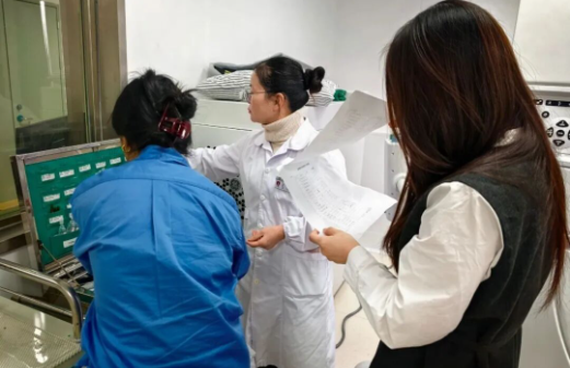 理论培训结束后,赵秋慧与陈梦琦两位老师深入放射科影像检查区域,开展实地调研与指导。她们仔细查看了抢救车、除颤仪、吸氧装置等急救设备的配置情况与维护状态,核查了急救药品的种类、有效期及存放管理流程以及科室现有应急演练记录与流程执行情况。结合现场情况,两位老师提出了具体而中肯的改进建议,切实助力中心放射科在实操层面提升应急响应效率与协同处置能力。